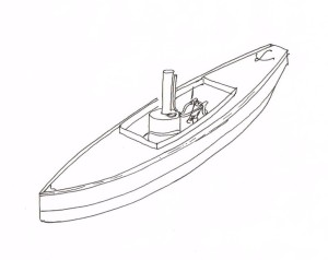 Die Linien basieren auf dem Spantenriss, den ich 2006 für meine private Turbinia entworfen hatte, mit den typischen schlanken Linien schneller Schiffe des ausgehenden 19. Jahrhunderts. Die Größe lässt sich an verschiedene Maschinengrößen und –Gewichte anpassen